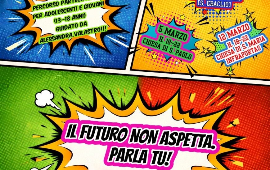 Venerdì 27 febbraio dalle ore 18.00 alle 22.00 presso il Centro pastorale della parrocchia di S. Eraclio si svolgerà il primo percorso di partecipazione con gli adolescenti dai 13 ai…