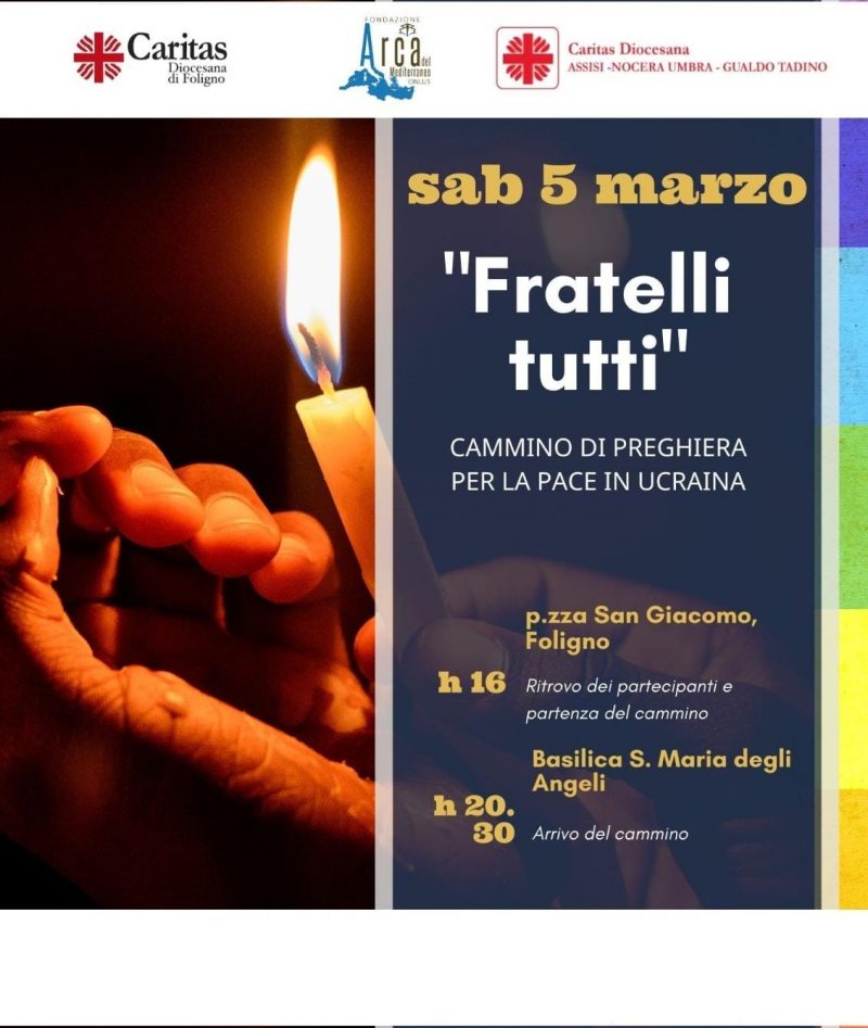 Domenica 11 maggio alle ore 15.30 presso la Sala Battenti dell’Istituto San Carlo, via A. Saffi n° 18 in Foligno, l’Azione Cattolica della Diocesi di Foligno è lieta di invitare tutta la cittadinanza all’incontro dal titolo “Sentieri di pace. Testimonianza dal cuore del conflitto in Ucraina”. Sarà con noi Emanuela Gitto, vicepresidente nazionale per il Settore Giovani di Azione Cattolica. Avremo l’opportunità di dialogare e … Continua a leggere Sentieri di pace: riflessione sul conflitto in Ucraina