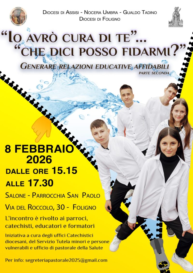 Altro 3 Marzo 2026 admindiocesi Convegno: io avrò cura di te domenica 15 Marzo Descrizione: Presso il Centro pastorale delle Stuoie – Parrocchia S. Maria degli Angeli, incontro rivolto ai parroci, genitori, educatori e formatori. Inizio: 15/03/2026 15:15 Fine: 15/03/2026 17:45 Categorie: Altro Indirizzo: 06034 Foligno, Umbria Italia Città: Foligno Regione: Umbria Paese: Italia Convegno: io avrò cura di te06034 Foligno, Umbria Italia FacebookTwitterPinterestemail locandina 15 marzo 2026 (1)