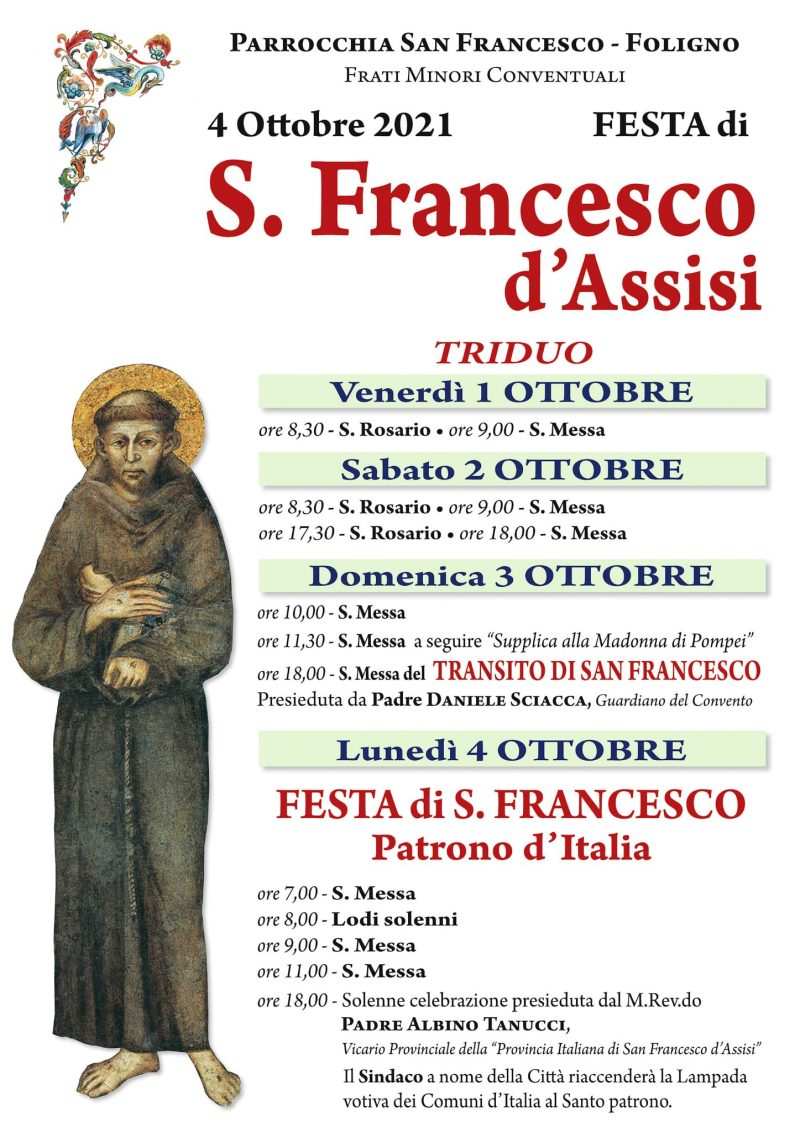 Altro 17 Settembre 2021 admindiocesi Festa di San Francesco patrono d’Italia lunedì 4 Ottobre Descrizione: Per informazioni scrivere a: folignoofmconv@gmail.com Data: 04/10/2021 (tutto il giorno) Categorie: Altro Indirizzo: 06034 Foligno Umbria Italia Città: Foligno Regione: Umbria Paese: Italia Festa di San Francesco patrono d'Italia06034 Foligno Umbria Italia FacebookTwitterPinterestemail