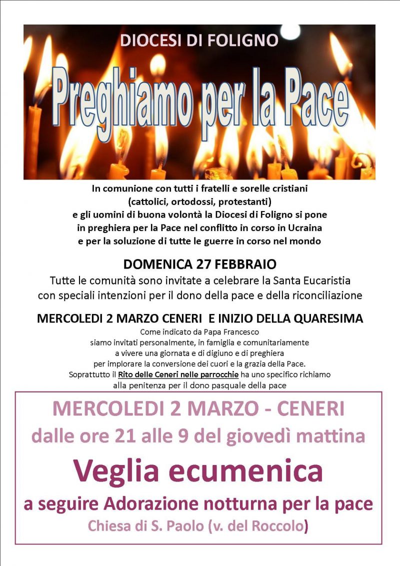 La Diocesi di Foligno organizza una veglia e l’adorazione notturna a sostegno del popolo dell’Ucraina e della pace in Europa presso la Chiesa di San Paolo in via del Roccolo.