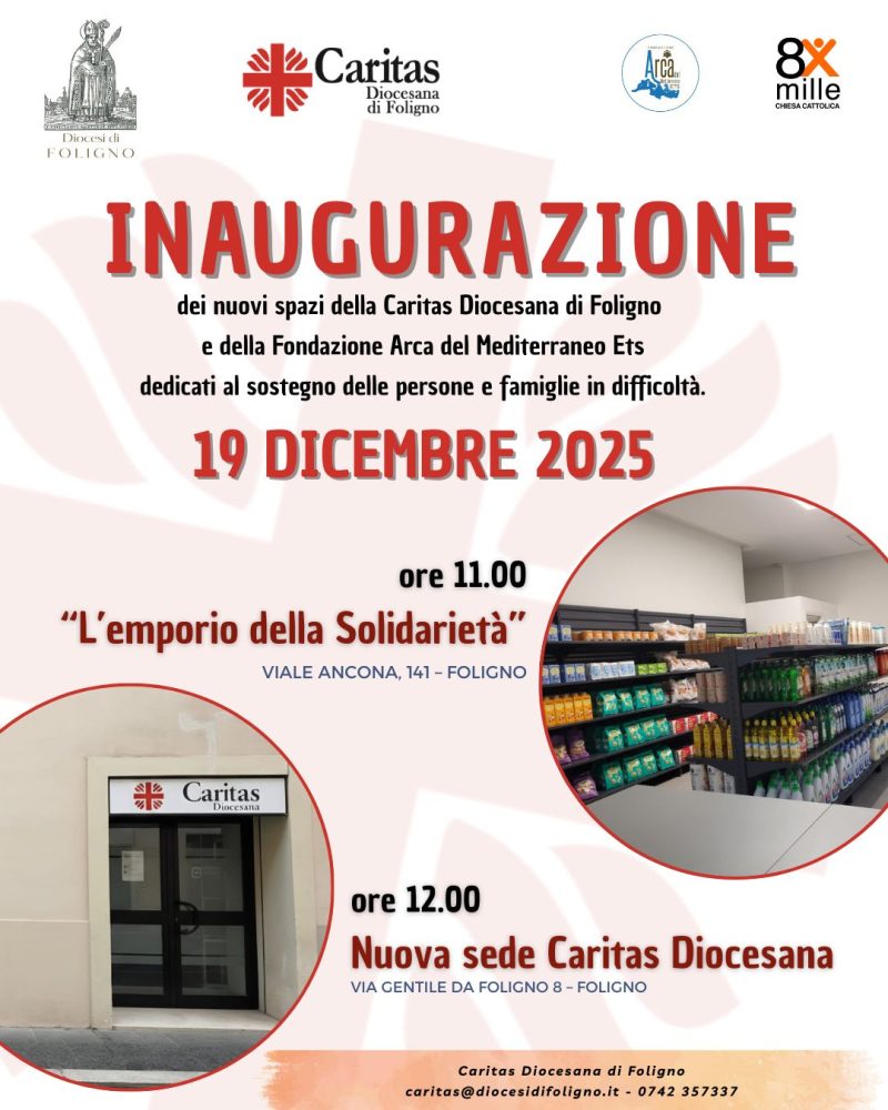 Altro 14 Dicembre 2025 admindiocesi venerdì 19 Dicembre Inaugurazione della nuova sede della Caritas diocesanaInizio: 19/12/2025 12:00