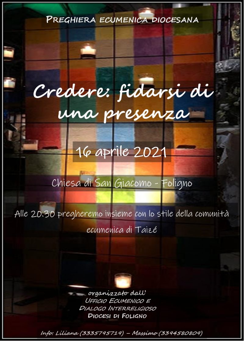 Altro 13 Aprile 2021 admindiocesi Preghiera ecumenica diocesana venerdì 16 Aprile Descrizione: Organizzata dall’Ufficio per l’ecumenismo e il dialogo interreligioso della Diocesi di Foligno presso la Chiesa di S.Giacomo in Foligno. Inizio: 16/04/2021 20:30 Fine: 16/04/2021 21:30 Categorie: Altro Indirizzo: Via Venti Settembre 9106034 Foligno Umbria Italia Città: Foligno Regione: Umbria Paese: Italia Preghiera ecumenica diocesanaVia Venti Settembre 9106034 Foligno Umbria Italia FacebookTwitterPinterestemail